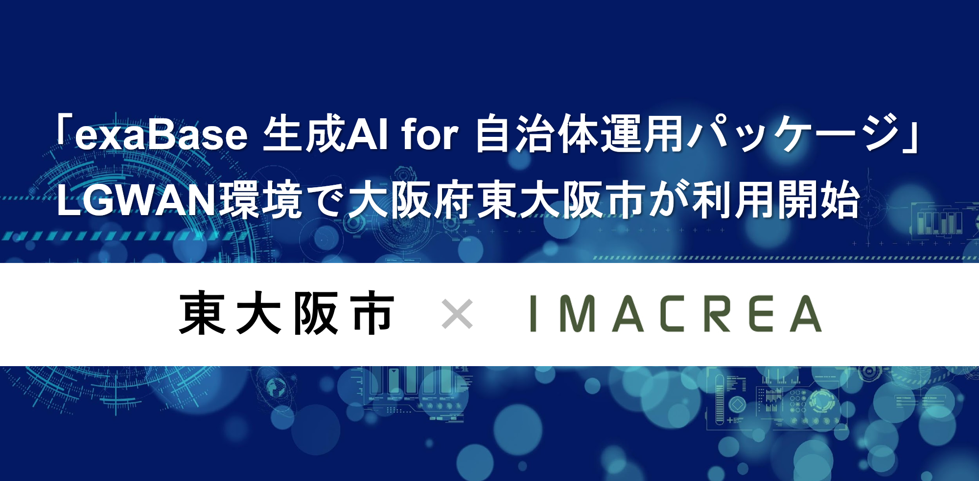 株式会社イマクリエ(本社:東京都港区、代表取締役:鈴⽊信吾、以下、当社)は、大阪府東大阪市において「exaBase 生成AI for 自治体運用パッケージ」(以下、本パッケージ)の提供を開始し、LGWAN環境での運用を正式に開始しました。