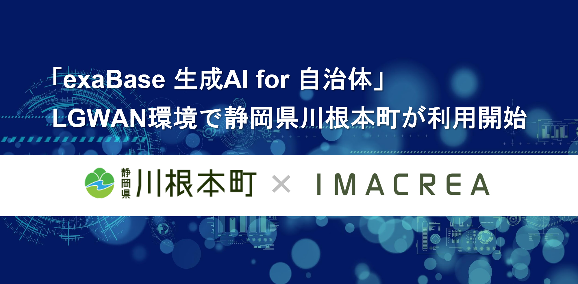株式会社イマクリエ(本社:東京都港区、代表取締役:鈴⽊信吾、以下、当社)は、静岡県川根本町において「exaBase 生成AI for 自治体」の提供を開始し、LGWAN環境での運用を正式に開始しました。