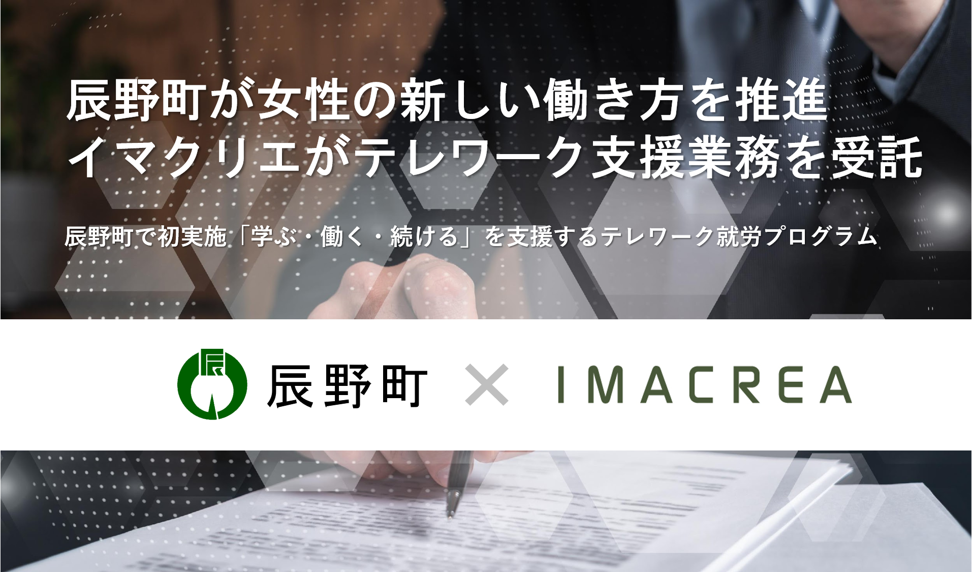 株式会社イマクリエ(本社:東京都港区、代表取締役:鈴⽊信吾、以下、当社)は、長野県辰野町から「辰野町テレワーク支援業務」を受託しました。