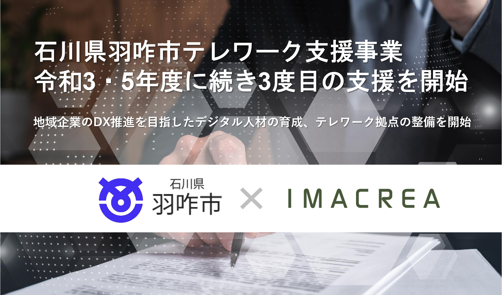 株式会社イマクリエ(本社:東京都港区、代表取締役:鈴木信吾、以下、当社)は、石川県羽咋市からテレワーク支援業務を受託しました。