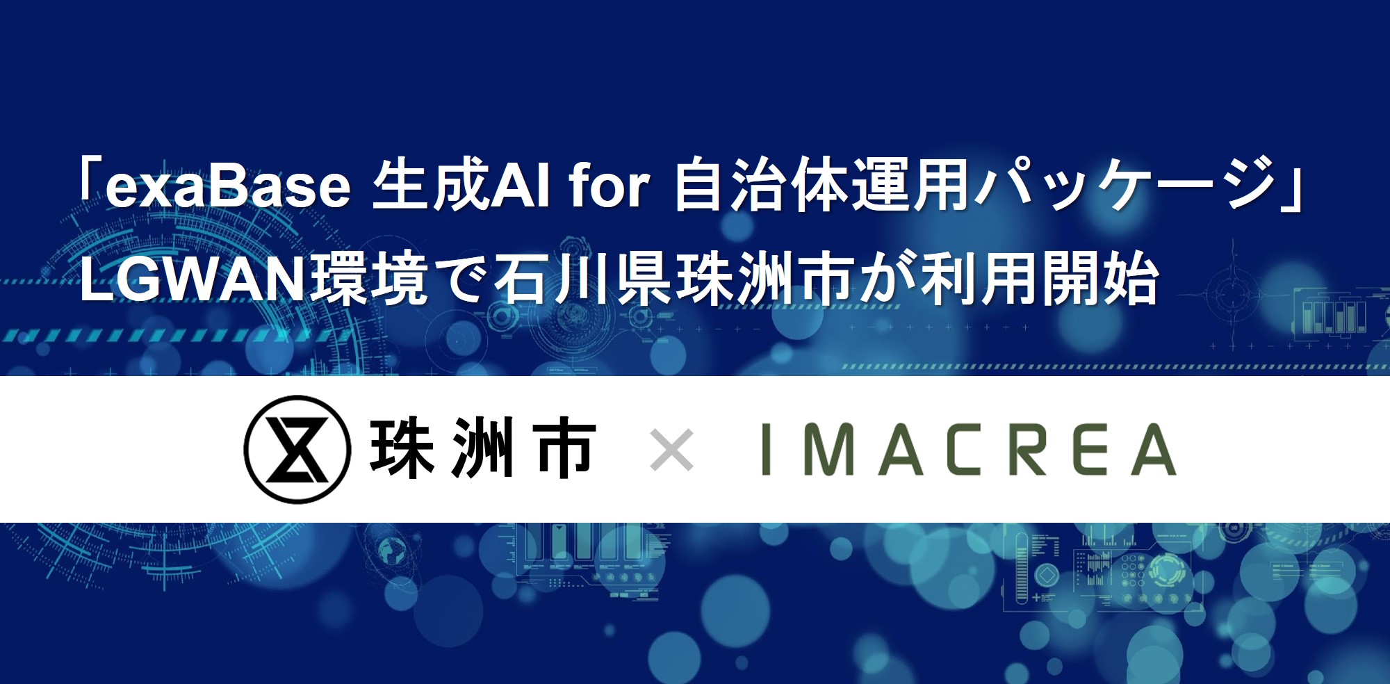 株式会社イマクリエ(本社:東京都港区、代表取締役:鈴⽊信吾、以下、当社)は、石川県珠洲市において「exaBase 生成AI for 自治体運用パッケージ」(以下、本パッケージ)の提供を開始し、LGWAN環境での運用を正式に開始しました。